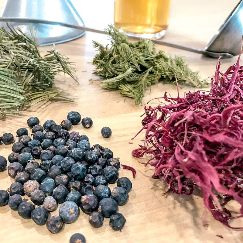 Fabriquer des alcools maison, sans alambique c’est faisable et facile! Dans cet atelier vous apprendrez comment fabriquer gins et alcools à partir de plantes macérées. Vous pourrez humer différents aromates forestière et comprendre la démarche pour élaborer vos propres gins. Vous dégusterez un alcool de sapin et repartirez avec les recettes et les aromates pour concocter un gin maison et une liqueur au sapin. Par la suite vous aurez tout le loisir de créer vos alcools maison au goût unique!